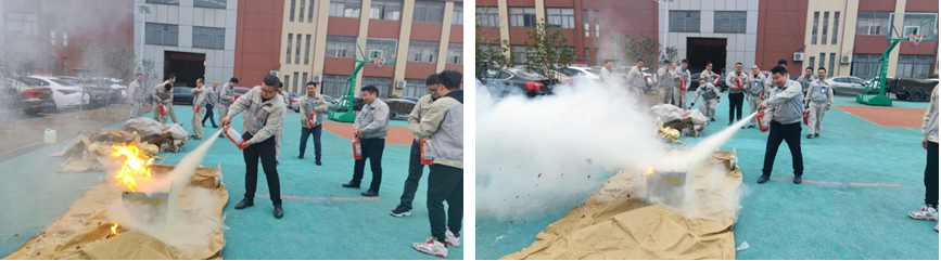有了理論知識,也提高了消防安全意識,又懂得了安全生產(chǎn)大于天,那接下來就是安全實踐、消防演練環(huán)節(jié)。在操場上,模擬了一個火災現(xiàn)場,熊熊烈火、滾滾濃煙,在煙霧彌漫中讓每一位參加培訓的員工都親身體驗了一次滅火的過程,從提灌、拔栓到噴射,一氣呵成,不僅學到了知識,也知道該如何正確操作滅火器,更親身感受到了火災的危害。